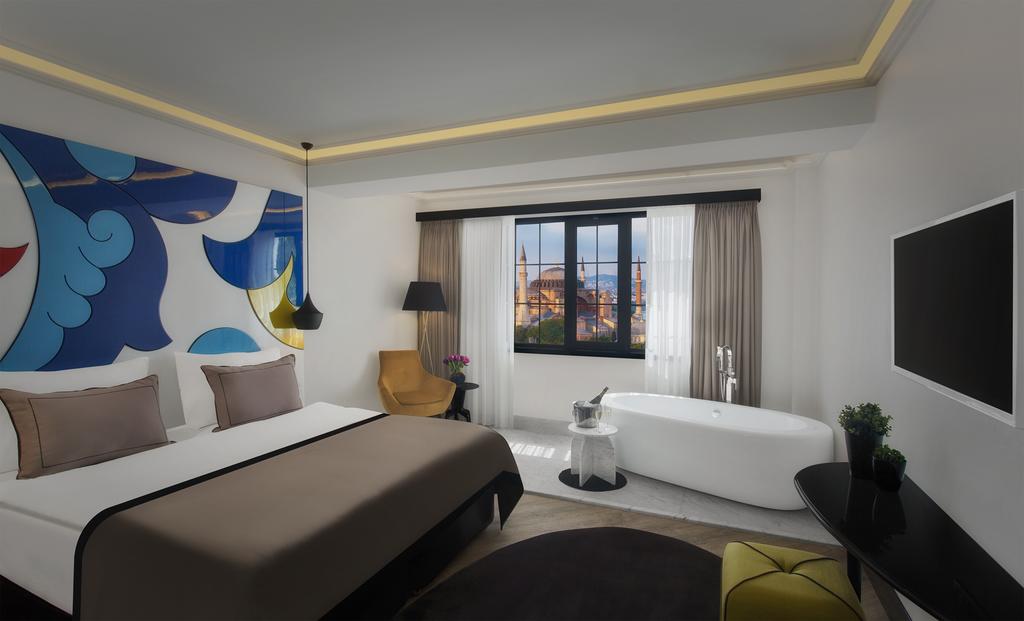تتميز جميع الغرف في فندق Sura Hagia Sophia بعازل للصوت وأجواء هادئة، وتحتوي على تكييف وتلفزيون إل سي دي مع قنوات فضائية وميني بار مُجهز بالكامل مع مشروبات غازية وآلة إسبريسو وغلاية كهربائية. وتحتوي جميعها على حمام خاص مع مجفف شعر ولوازم استحمام مجانية ونعال. وتوفر بعض الغرف إطلالات على المدينة، بينما يطل البعض الآخر على آيا صوفيا.