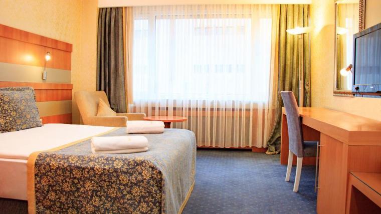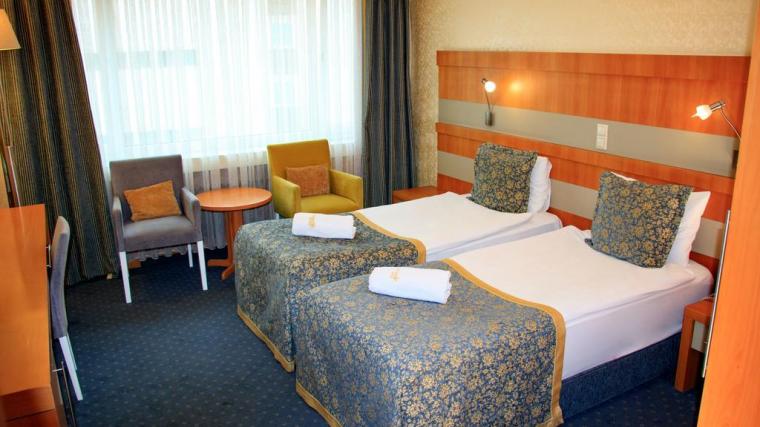 تتميز غرف الفندق بأثاث خشبي عصري ومكتب عمل، وتشمل الغرف منطقة جلوس مع جهاز تلفزيون مع القنوات الفضائية وحماماً خاصاً مع مجفف للشعر، كما تحتوي كل غرفة على ميني بار وآلة صنع القهوة. يقدم الفندق بوفيه إفطار مع الشاي والفواكه الطازجة في الصباح،