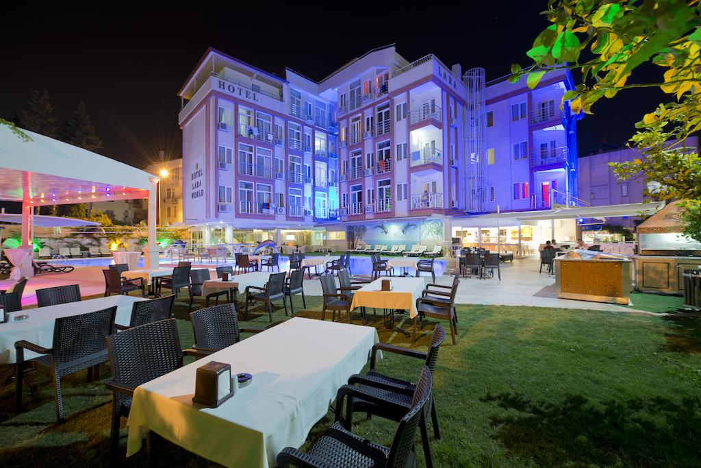 يضم Lara World منطقة شاطئ خاص حاصل على شهادة العلم الأزرق مع كراسي استلقاء للتشمس ومظلات مجانية على بعد 200 م. ويضم مسبحًا وحمامًا تقليديًا. وتحتوي الغرف على تلفزيونات إل سي دي مع قنوات فضائية وتوفر خدمة الواي فاي المجانية.